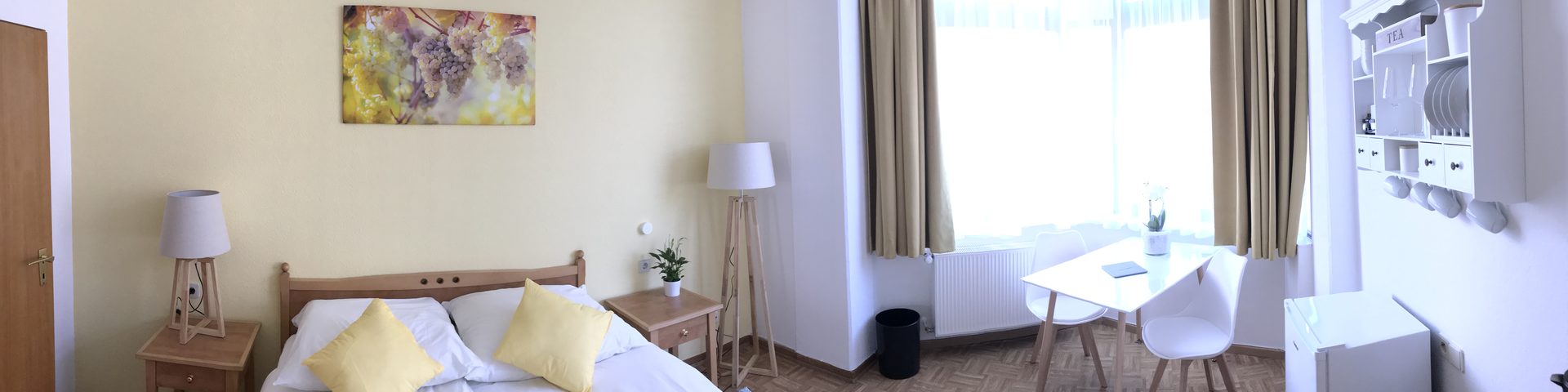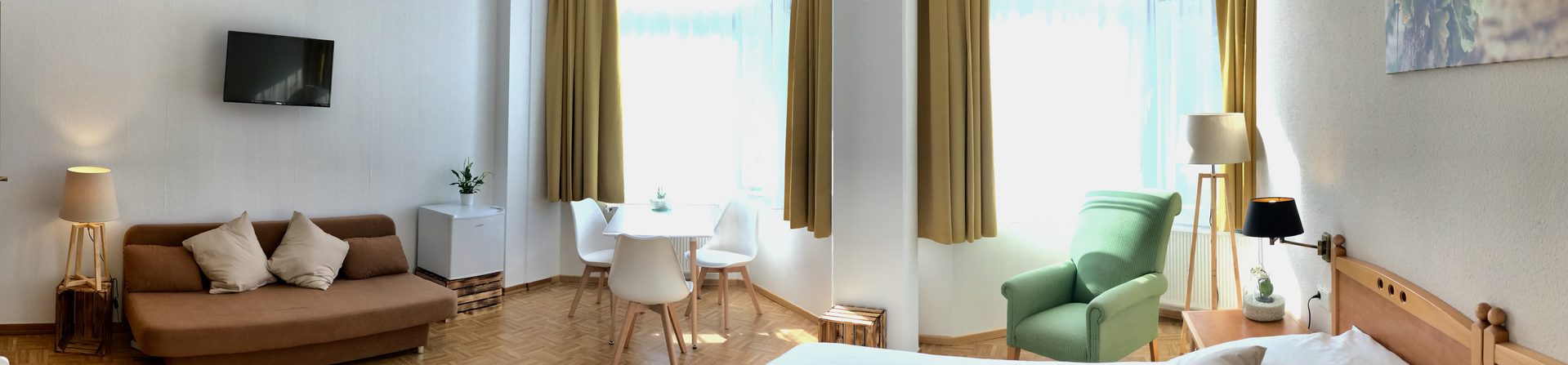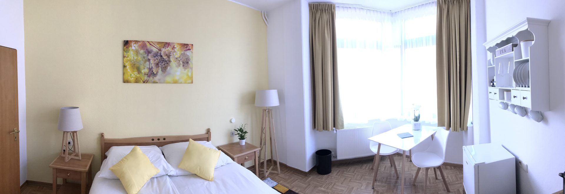 Sie können bequem und einfach ein leichtes Frühstück genießen. Brötchen und Croissants werden morgens gegen 7:30 Uhr geliefert, hygienische verpackt & verschlossen, lautlos an die Zimmertür angehängt. Milch, Orangensaft, Butter, Eier (Eierkocher vorhanden), Cerealien, Konfitüre, Hönig, Nutella, sowie Salz, Pfeffer und Zucker gehören dazu. Alles für einen guten Start in einen schönen Tag! Buchen Sie das kleine Frühstück einfach dazu.